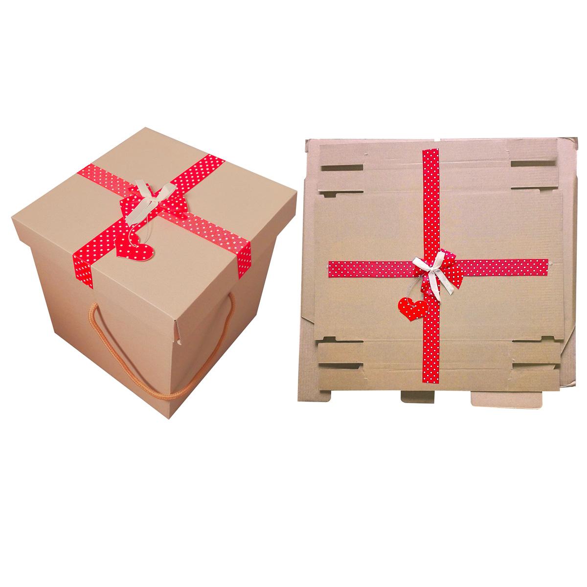 Подарочная коробка-трансформер 21х21х21 см с лентой, 37332