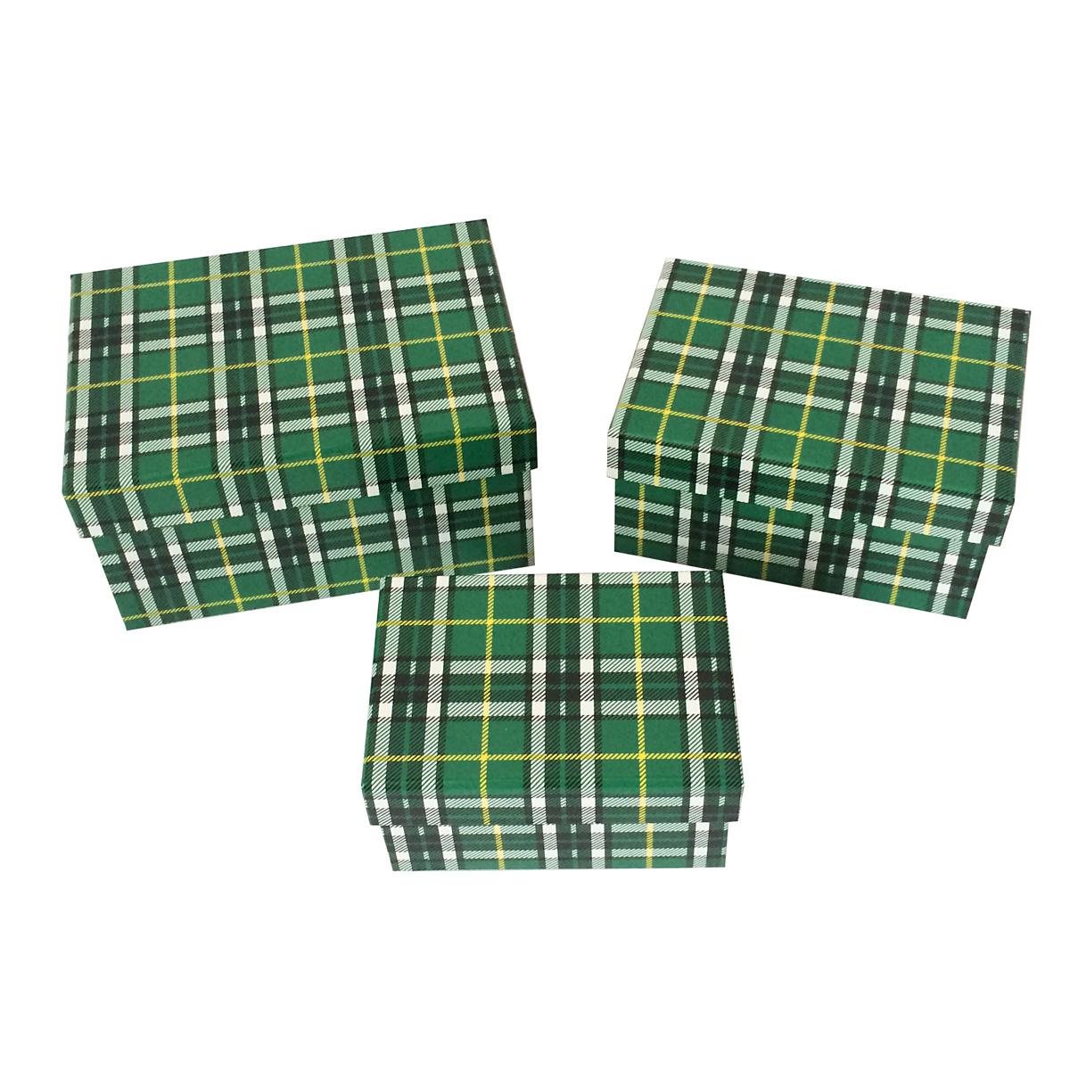 Коробка карт. набор из 3х шт. прямоуг. (11,2*8*5,8 - 15,7*11,2*8,2) Зеленая клетка
