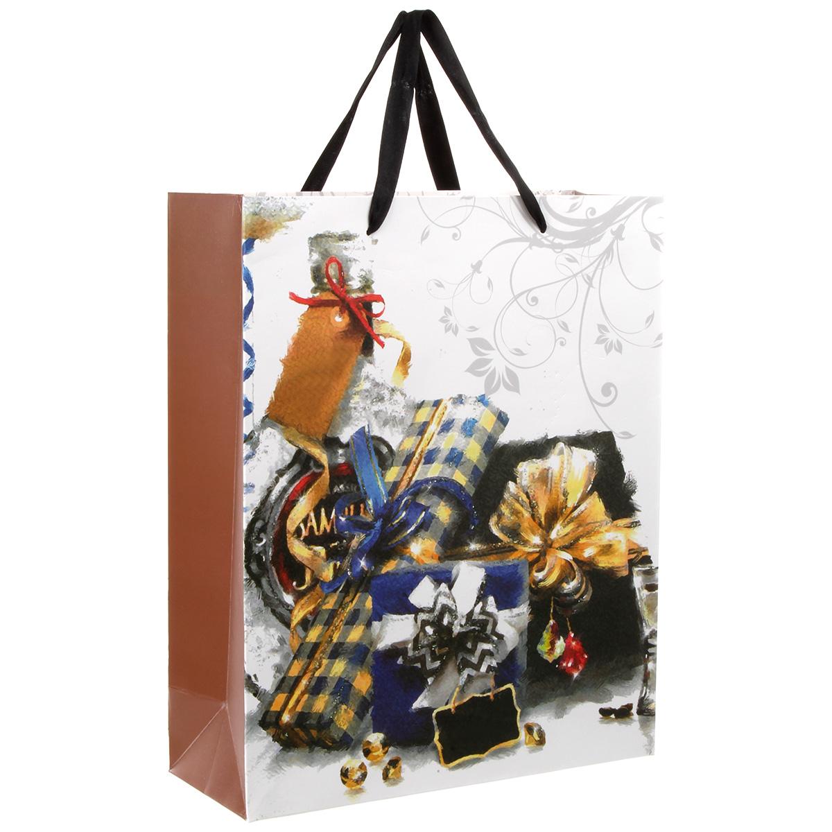 Интересный дизайн со стильным рисунком, удобные ручки-ленточки, ламинированная поверхность - такой пакет идеально подойдет для подарка, который станет выглядеть празднично и роскошно! Можно при желании украсить пакет декоративными аксессуарами, чтобы получилось оригинальное и индивидуальное оформление! Пакет изготовлен из бумаги. Размеры пакета: 26*10*32 см.