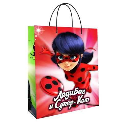 Леди Баг и Супер-Кот. Пакет подарочный большой (красный с зеленым), 220*310*100 мм
