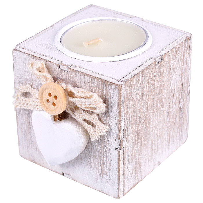 Свеча "шайба" в деревянном кубе с декором "Сердечко". Цвет белый и серый.Упаковка - п/э 5,7*5,7*5,7*5,7см. Свечи - это не только надежный источник света, но и замечательное украшение для вашего праздничного стола и интерьера.Свеча создаст незабываемую атмосферу, будь то торжество или будничный день.