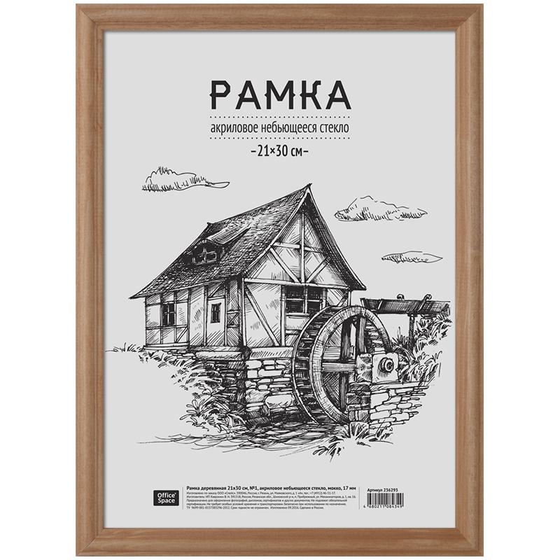 Рамка деревянная 21*30см, №1, пластиковое небьющееся стекло, мокко, 17мм., 236293