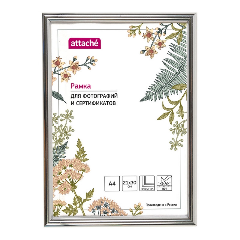 Рамка пластиковая Attache 21x30 (A4) ПЭТ Серебро (глянец)