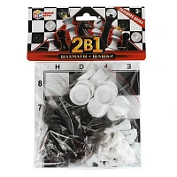 Настольная игра Шахматы и шашки 2-в-1 в пакете с хэдером малого формата. Умные игры