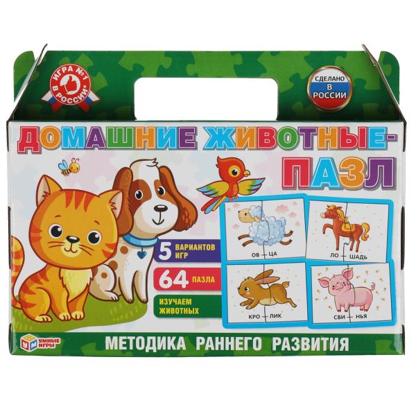 Домашние животные. Чемоданчик-сумочка с пазлами. Умные игры