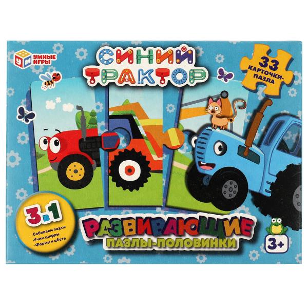 Развивающие пазлы-половинки "Синий Трактор". 3в1 155х115х30мм. Умные игры