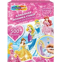 Набор для детского творчества алмазные мозаики-стикеры принцессы МУЛЬТИ АРТ