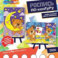Набор для детского творчества роспись холст по конт.2 шт,10х15см мишки МУЛЬТИ АРТ