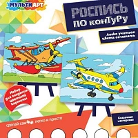 Набор для детского творчества роспись холст по конт.2 шт, 10х15см самолетики МУЛЬТИ АРТ