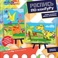 Набор для детского творчества роспись холст по конт.2 шт,10х15см ДИНОЗАВРЫ МУЛЬТИ АРТ