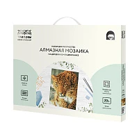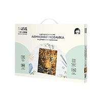 Алмазная мозаика ТРИ СОВЫ "Леопард", 40*50см, холст на деревянном подрамнике, картонная коробка с пластиковой ручкой