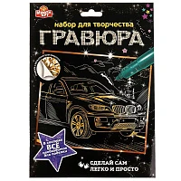 Набор для детского творчества гравюра 18*24 см, гоночный АВТОМОБИЛЬ, золотая МУЛЬТИ АРТ