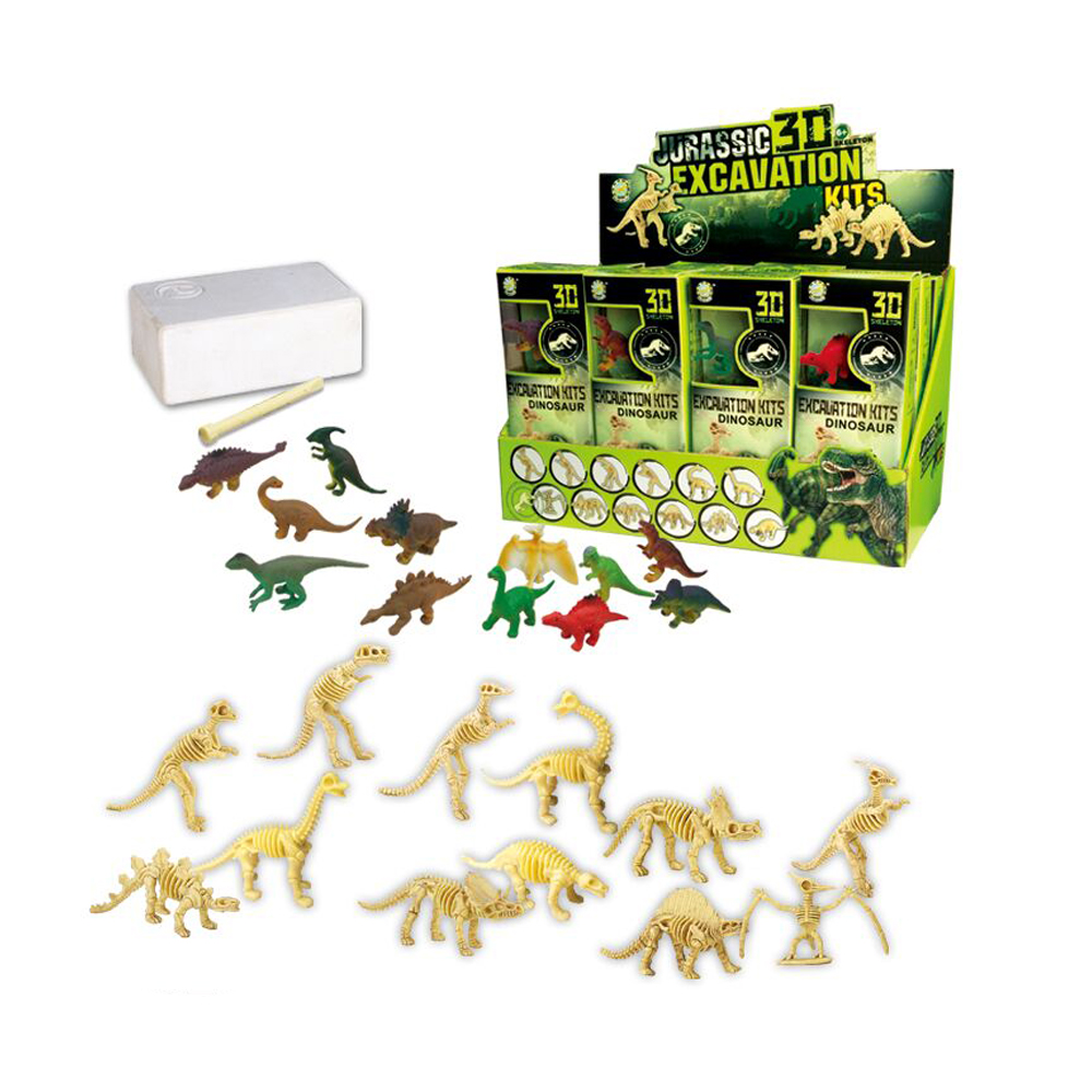 Набор состоит из молотка, стамески, костей динозавра, которые с помощью пластиковых инструментов нужно извлечь из гипсовой формы.