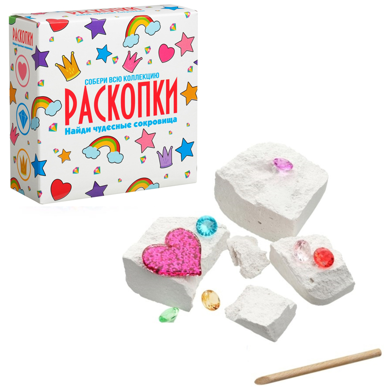 Перед вами набор для юных кладоискателей. Что внутри? Чудесные сокровища! Снимайте слои породы с помощью специального инструмента. Для того чтобы стало легче раскапывать сокровища, рекомендуем смочить брусок водой. Промойте находки и высушите. Сокровища теперь ваши! В наборе: деревянный стек для дробления, окаменелый грунт с сокровищами (россыпь разноцветных находок из пластика, фигурная подвеска) Цвета находок в ассортименте