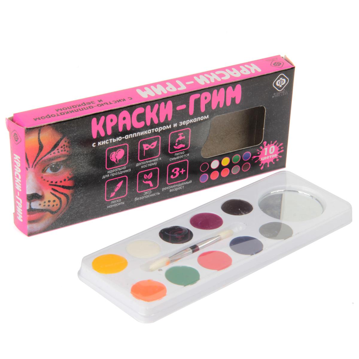 Краски-грим с кистью-аппликатором и зеркалом, 10 цветов.