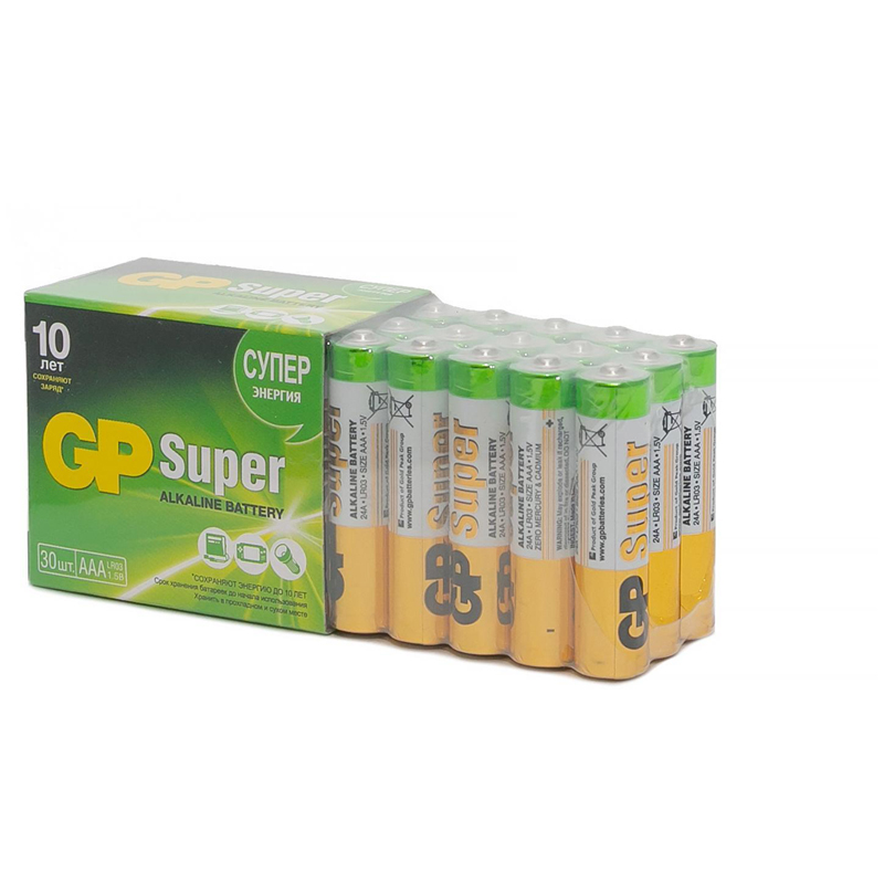 Батарейка GP Super AAA (LR03) 24A алкалиновая, SB10 (увеличенная фасовка)