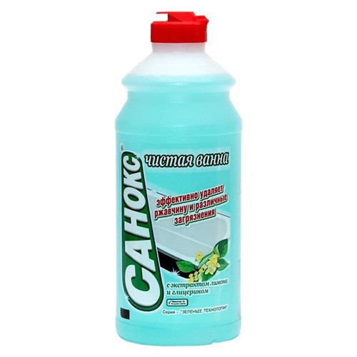 Чистящие средства от производителя ЗАО АИСТ. Бывает достаточно сложно подобрать подходящее средство для чистки сантехники и ванной комнаты в целом. Одни не дают видимого результата, другие царапают поверхность, третьи вызывают головокружения, аллергические реакции и другие неприятности. Чистящее средство для сантехники Санокс Чистая ванна справляется сразу со всеми возможными проблемами, мягко очищает поверхности от загрязнений, бактерий, ржавчины и налета. При этом действует бережно, но качественно. Ванна, унитаз, душевая кабина, кафель и раковина будут сиять. Гель обладает дезинфицирующим эффектом, устраняет загрязнения и неприятный запах. Для удаления жирных пятен или мыльного налета достаточно вспенить чистящее средство на мочалке, протереть нужное место и смыть чистой водой. Для борьбы со ржавчиной или въевшимися пятнами его наносят на 10 минут, а затем смывают. Гелеобразная консистенция хорошо пенится и без труда смывается, а также не оставляет царапин. В составе присутствует глицерин и экстракт лимона. Без хлора.