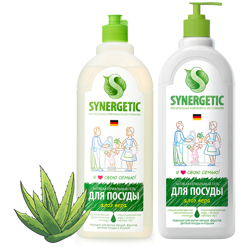 Средство для мытья посуды, фруктов, игрушек Synergetic "Алоэ", антибакт.,концентрат,с дозатором/без дозатора, 1 л