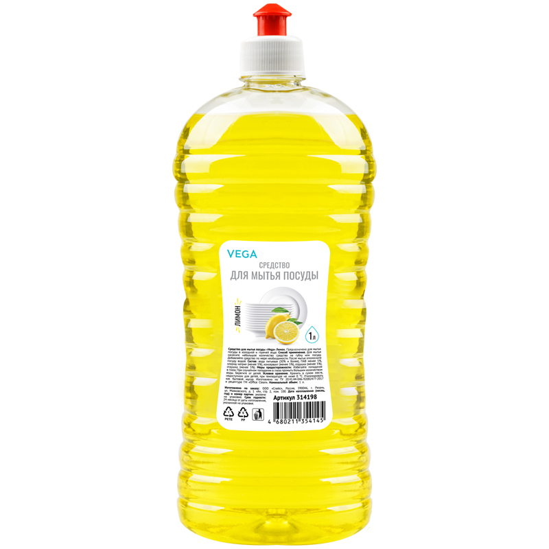 "Средство для мытья посуды Vega ""Лимон"", пуш-пул, 1л."