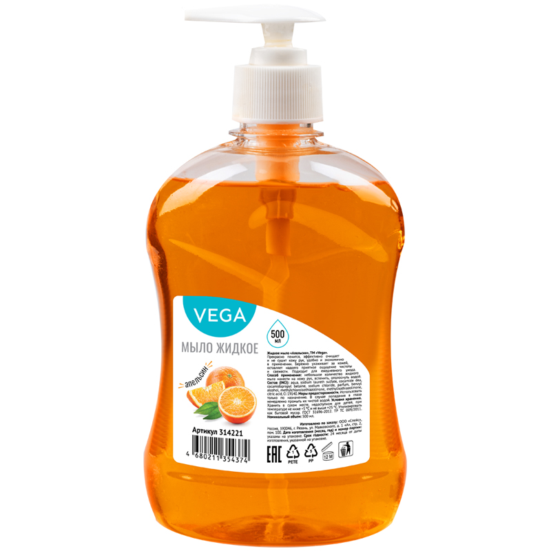 Мыло жидкое Vega "Апельсин", с дозатором, 500мл.