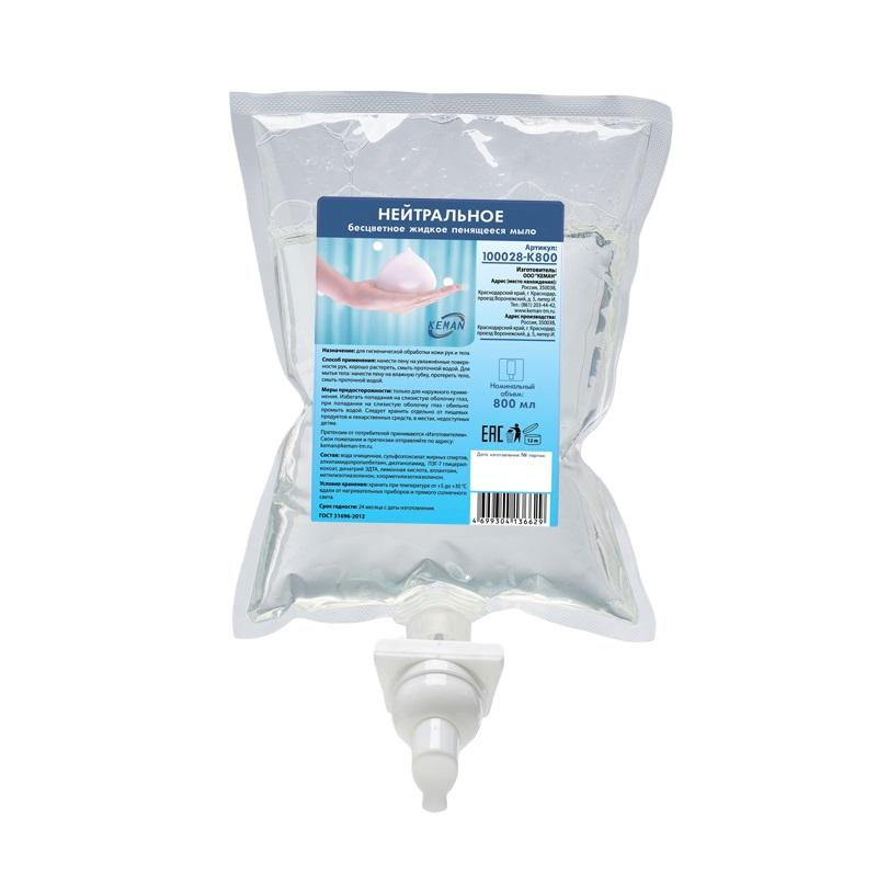 Картридж с жидким мылом KEMAN нейтральное пенное бесцветное S34 800мл 100028-К800