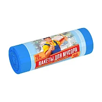 Мешки для мусора Avikomp 60л (10шт) #ВНАХЛЕСТ с завязками рулон голубые