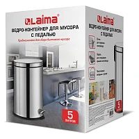 Ведро-контейнер для мусора урна с педалью LAIMA "Classic Plus", 5 литров, зеркальное, Турция, 608112