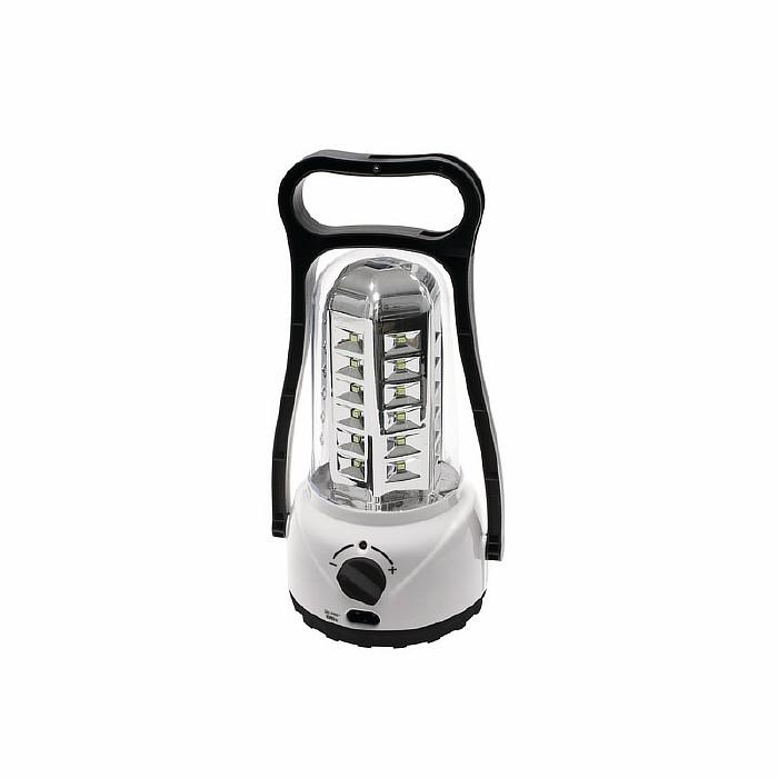 Яркий кемпинговый фонарь, оснащенный 36LED элементами и регулируемым уровнем яркости. Имеет многофункциональную ручку-трансформер и крючок для подвешивания. Корпус ударопрочный и влагостойкий. Работает от аккумуляторной батареи 4V 2Ah, время работы до 8 часов. Индикация процесса зарядки. Размер: 120х115х238 мм.