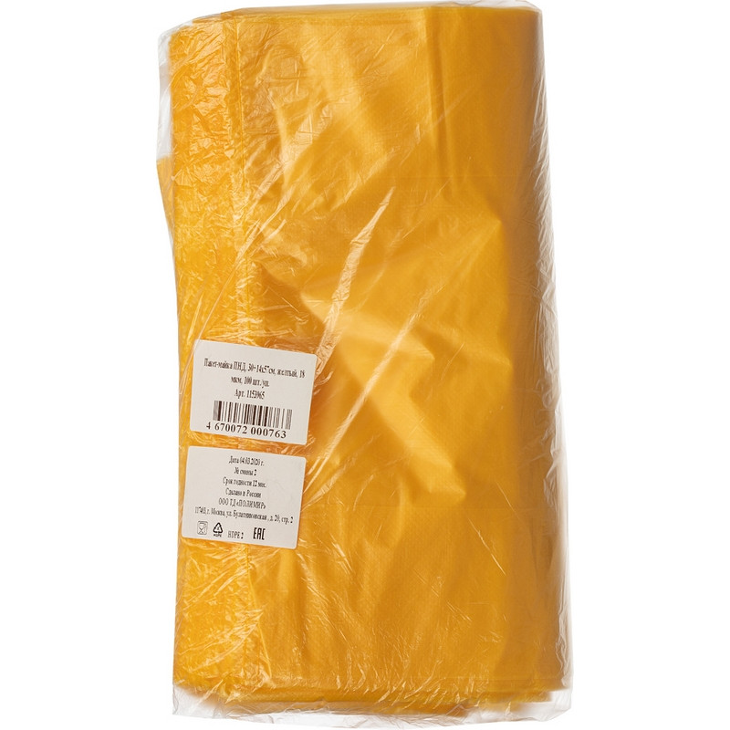 Пакет-майка ПНД, 30+14x57см, желтый, 18 мкм, 100 шт./уп
