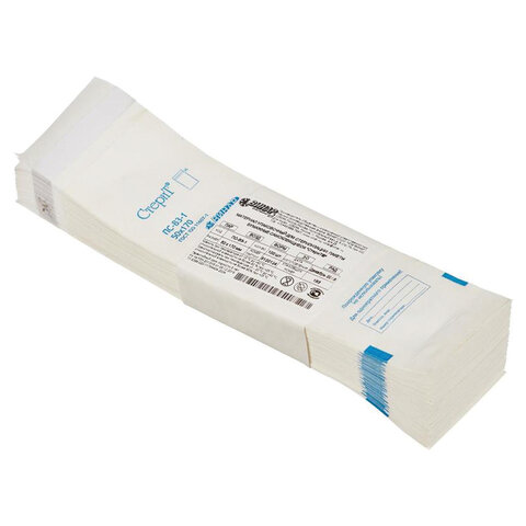 Пакеты СтериТ изготовлены из белой влагопрочной бумаги.Применимы для паровой, воздушной, пароформальдегидной, этиленоксидной и радиационной стерилизации, легко проницаемы для соответствующего стерилизующего агента, в закрытом виде непроницаемы для микроорганизмов. Сохраняют целостность после стерилизации соответствующим методом.Характеристики продукта:- соответствуют требованиям ГОСТ ISO 11607-1, EN 868;- на внешней стороне пакета нанесён индикатор 1 класса паровой и воздушной стерилизации, позволяющий отличить простерилизованные изделия от нестерилизованных;- не требуют дополнительного оборудования для герметичного запаивания;- широкий диапазон типоразмеров;- срок сохранения стерильности – 36 до месяцев;- гарантийный срок годности – 5 лет.ТУ 9398-020-11764404-2004Регистрационные удостоверения № РЗН 2013/18 от 09.12.2019Сертификат соответствия РОСС RU.АМ05.Н01077 от 21.05.2019