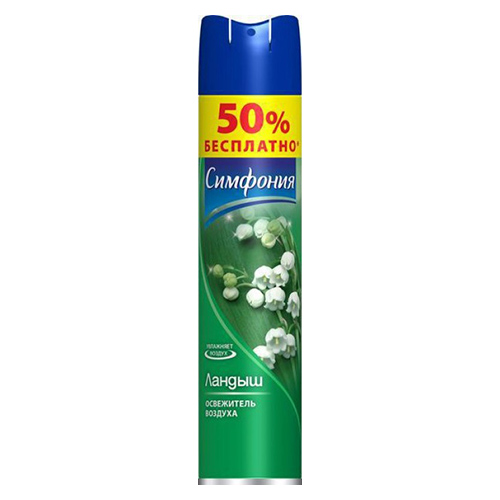 Освежители воздуха от производителя АРНЕСТ. С наличием неприятного запаха в квартире сталкиваются не только хозяева котов и собак. Неприятный запах может возникнуть и в помещении с плохой вентиляцией, например, в ванной комнате. Освежитель воздуха Симфония Ландыш быстро и эффективно справляется с неприятными запахами и освежает помещение тонким ненавязчивым ароматом. Технология сухого распыления гарантирует отсутствие разводов и пятен на мебели. Средство подходит для применения в ванной, туалете, на кухне и даже в жилых комнатах. Благодаря наличию ионов серебра средство не только освежает, но и дезинфицирует. Освежитель экономно расходуется, его надолго хватает, а цена совсем невысокая. Баллон очень удобно держать в руке, он не сползает и не выскальзывает. Кнопка распыления находится непосредственно на крышке потому достаточно всего одного нажатия, чтобы распылить средство. Состав: линалоол, спирт этиловый, дезинфицирующее вещество, масло ландыша, рицинолеат цинка, алифатические углеводороды, парфюмерная композиция.