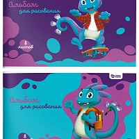 Альбом для рисования 8 л. А4 скреп. Schoolformat SMART DINO мел. карт. ВД-лак офс. 100 г/м2