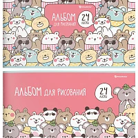 Альбом для рисования 24 л. А4 скреп. Schoolformat МИЛЫЕ МЕДВЕЖАТА мел. карт. выб. УФ-лак офс. 100 г/м2