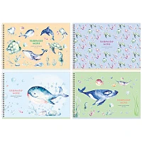Альбом для рисования Маяк А4 24л, скрепка, Подводный мир, в ассортименте А 4024 К4