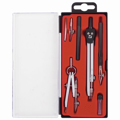 Готовальня BRAUBERG "Architect", 7 предметов: циркуль + кронциркуль с рейсфедором, рейсфедер + держатель, 2 вставки, грифель, 210346