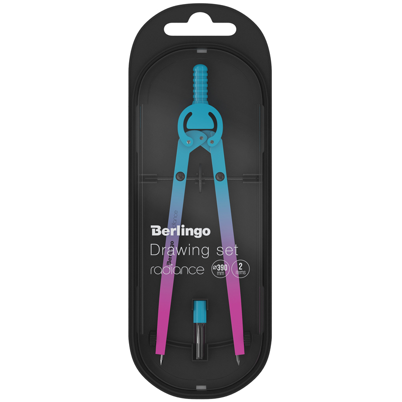Готовальня Berlingo "Radiance", 2 предмета, циркуль 170мм, розовый/голубой градиент, пластиковый футляр