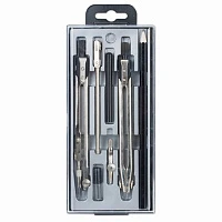 Готовальня BRAUBERG "Klasse", 7 предметов: циркуль+кронциркуль, рейсфедер + держатель, 2 вставки, грифель, 210344