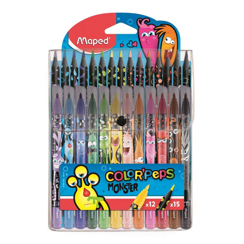 Набор Maped:12 фломастеров,15 пластик. цв.карандашей серии MONSTER,984718