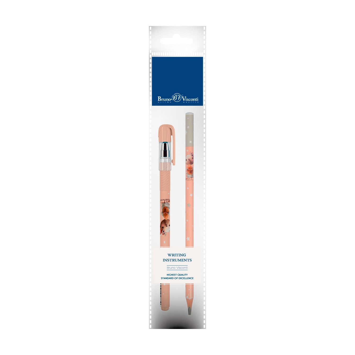 НАБОР: РУЧКА "MagicWrite" ШАР. 0.5 мм И КАРАНДАШ ЧЕРНОГРАФИТНЫЙ HB "ArtGraphix" Forest Dream. Мышка с орешком