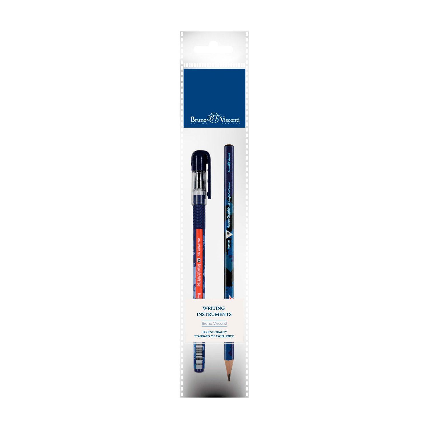 НАБОР: РУЧКА "MagicWrite" ШАР. 0.5 мм И КАРАНДАШ ЧЕРНОГРАФИТНЫЙ HB "HappyGraphix" Милитари Navy