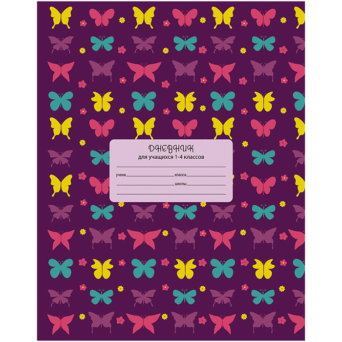 Дневник для младших классов, 48 л., твердый переплет. "Разноцветные бабочки"