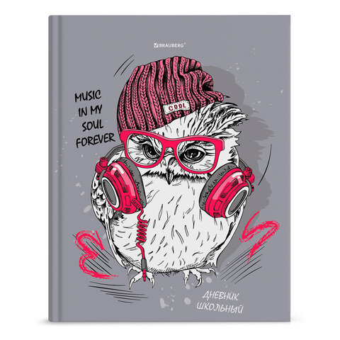 Дневник 1-11 класс 40 л., твердый, BRAUBERG, глянцевая ламинация, "Cool Owl", 106371