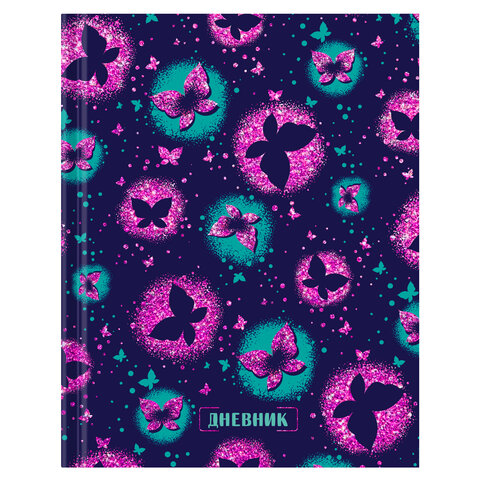 Дневник 1-4 класс 48 л., твердый, ЮНЛАНДИЯ, блестки, с подсказом, "Бабочки", 106367