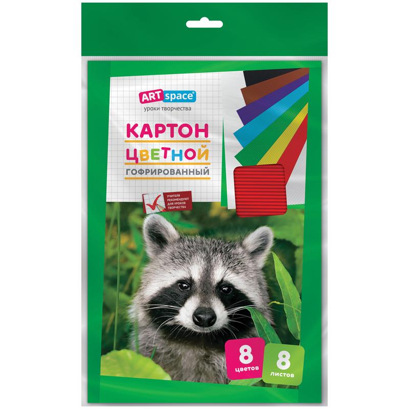 Картон цветной гофрированный A4, ArtSpace, 8л., 8цв., в пакете с европодвесом Нк8-8г_18756
