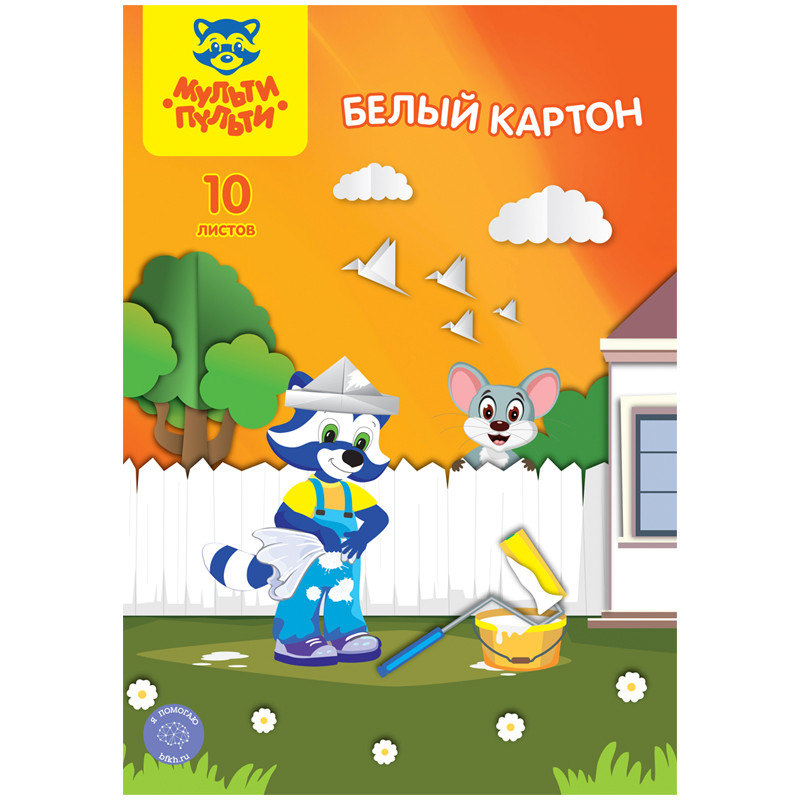 Картон белый A4, Мульти-Пульти, 10 листов, немелованный, в папке