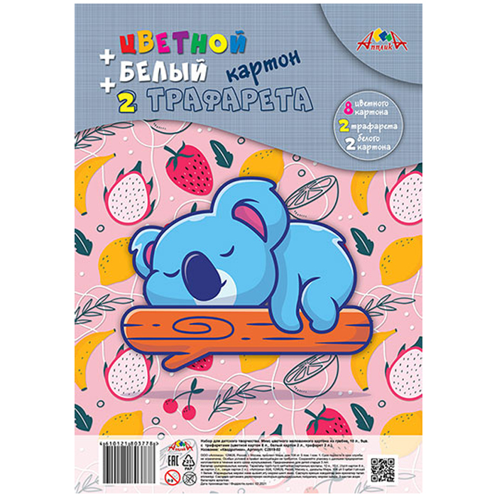 Цветной и белый картон А4 10л. 9 цв + 2 трафарета "Малыш-соня" на гребне