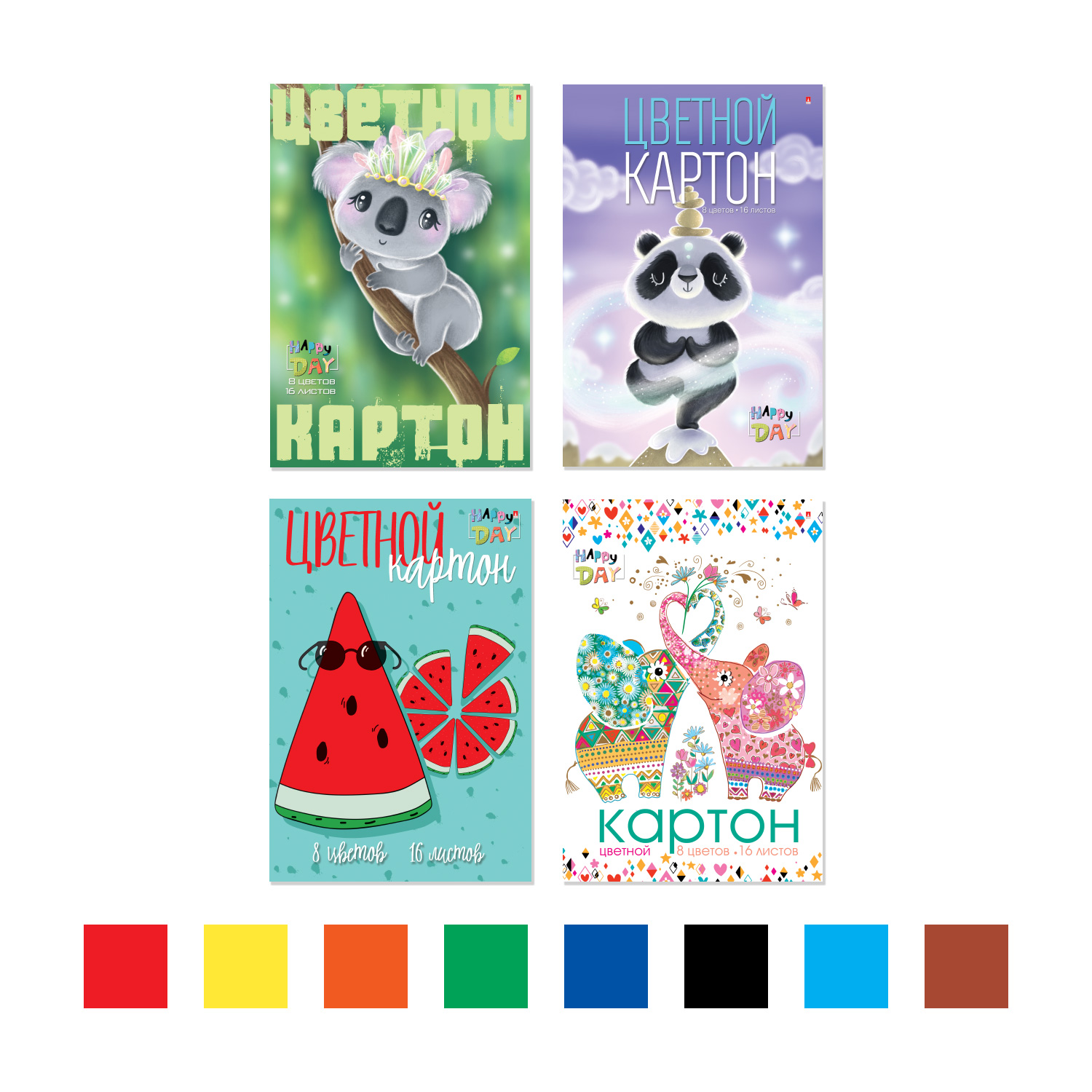 НАБОР ЦВЕТНОГО КАРТОНА Ф.А4 16Л. 8ЦВ. "МУЛЬТИКИ" 4 ВИДА
