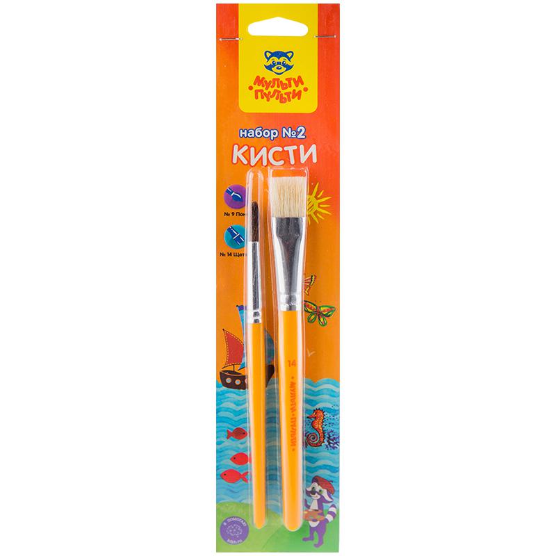 Набор кистей 2 шт., №2, Пони, круглая №9, Щетина, плоская №14: SB_10491 штр.: 14680211084919