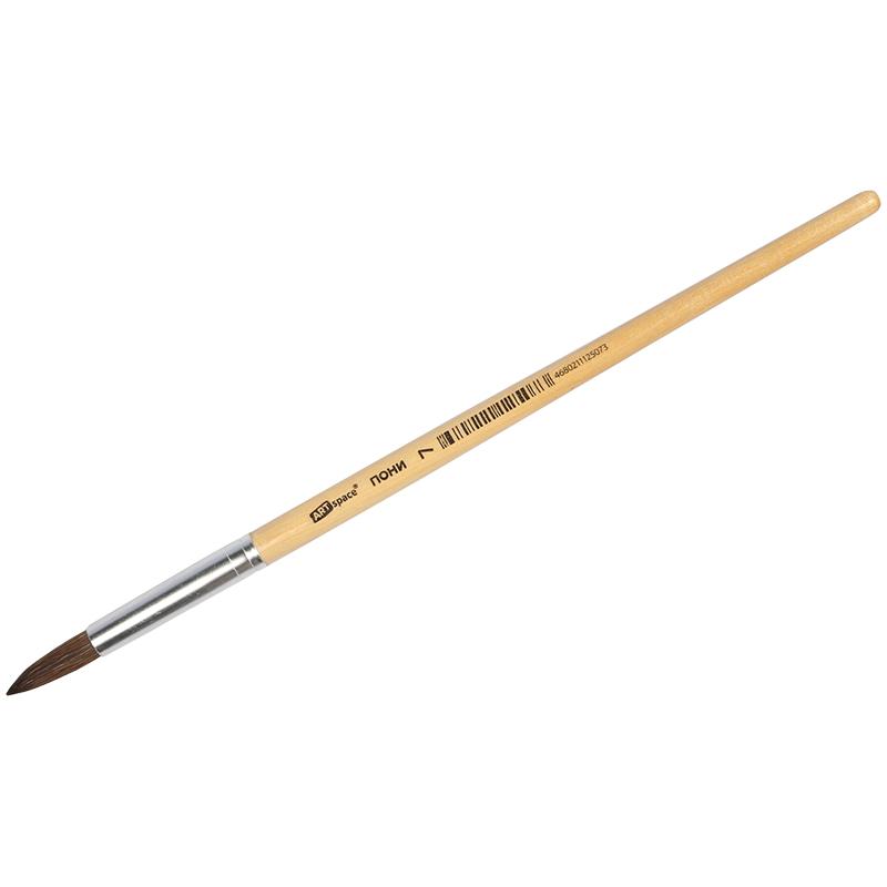 Кисть пони, круглая. С деревянной ручкой покрытой прозрачным лаком. На каждой ручке штрихкод.