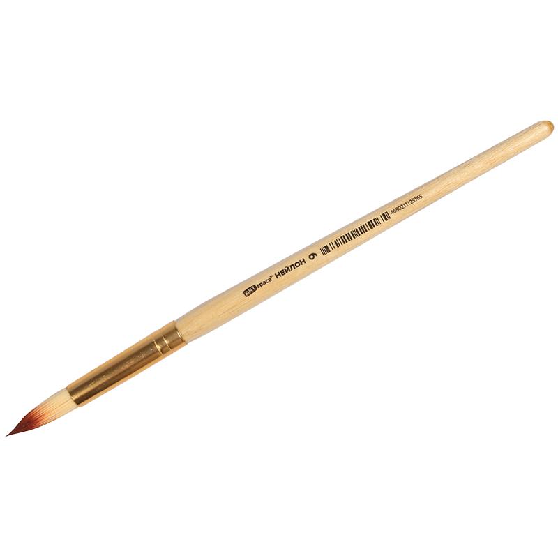 Кисть нейлон, круглая. С деревянной ручкой покрытой прозрачным лаком. На каждой ручке штрихкод.